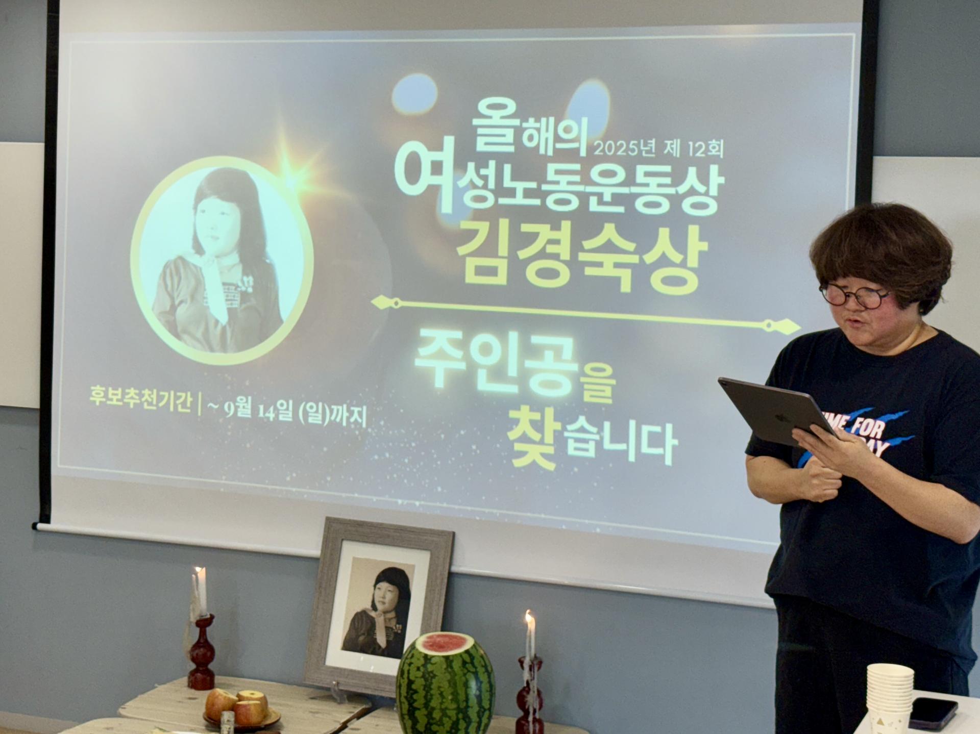 마지막으로, 9월 14일까지 여성노동운동의 현장에서 치열하게 싸우고 있는 동시대의 활동가에게 드리는 ‘김경숙상’ 추천도 받고 있으니 많은 관심과 참여, 추천 부탁드립니다.