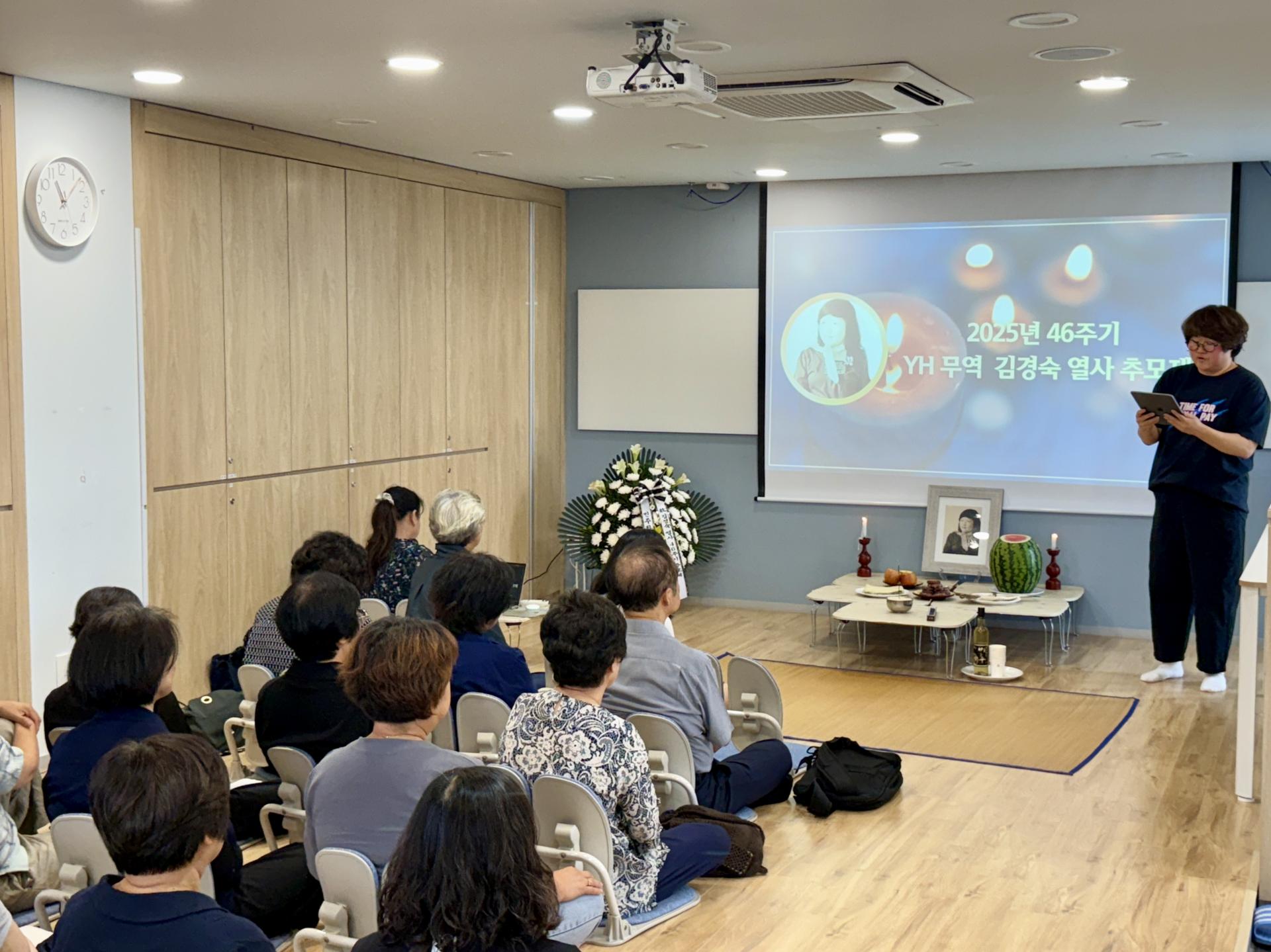 이날 추모제에는 YH 투쟁에 함께했던 동지들, 청계피복과 콘트롤데이터 노동자들, 가톨릭노동사목, 전국여성노동조합, 그리고 전국의 여성노동자회 활동가들이 함께했습니다. 세대를 넘어선 연대의 만남은 김경숙 열사가 꿈꾸었던 ‘노동자가 존중받는 세상’을 향한 길이 결코 멈추지 않았음을 보여주었습니다.