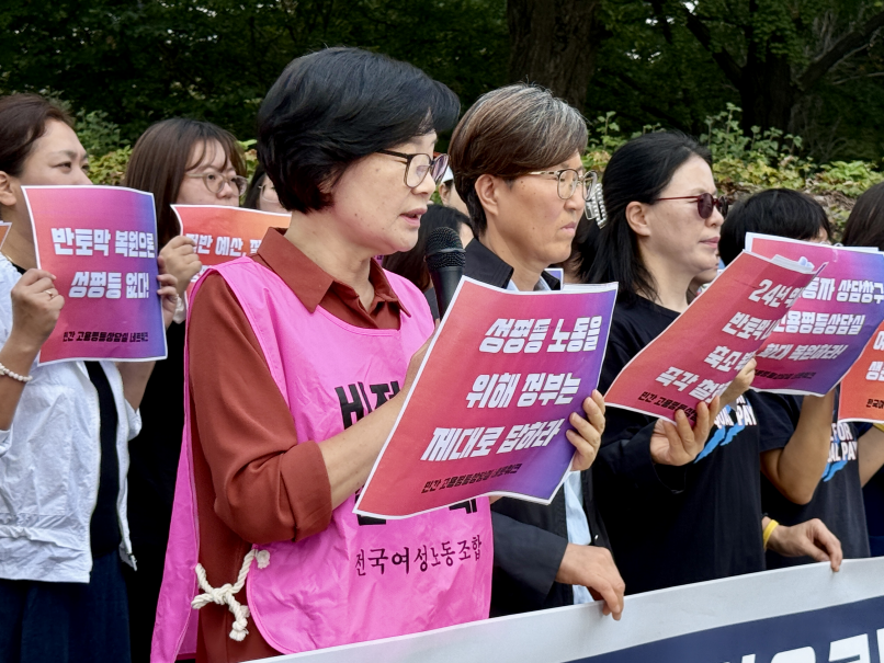 오늘 우리는 정부의 성평등노동정책 역행에 대한 깊은 우려와 분노로 이자리에 섰습니다.