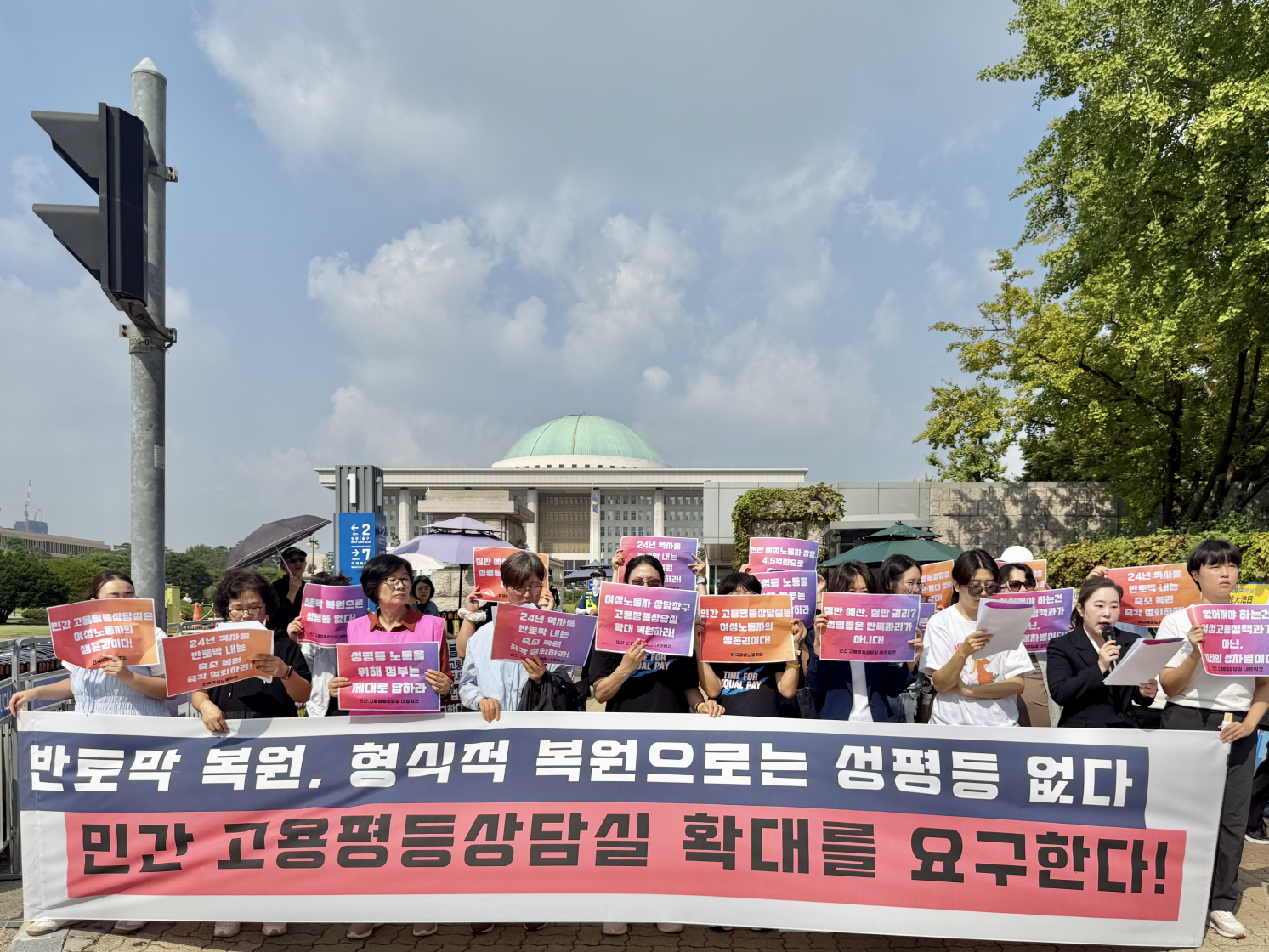 <“반토막 복원, 형식적 복원으로는 성평등 없다. 민간 고용평등상담실 확대를 요구한다!” - 민간고용평등상담실 확대 촉구 기자회견 - 일시 : 2025년 10월 1일 (수) 오전 10:00