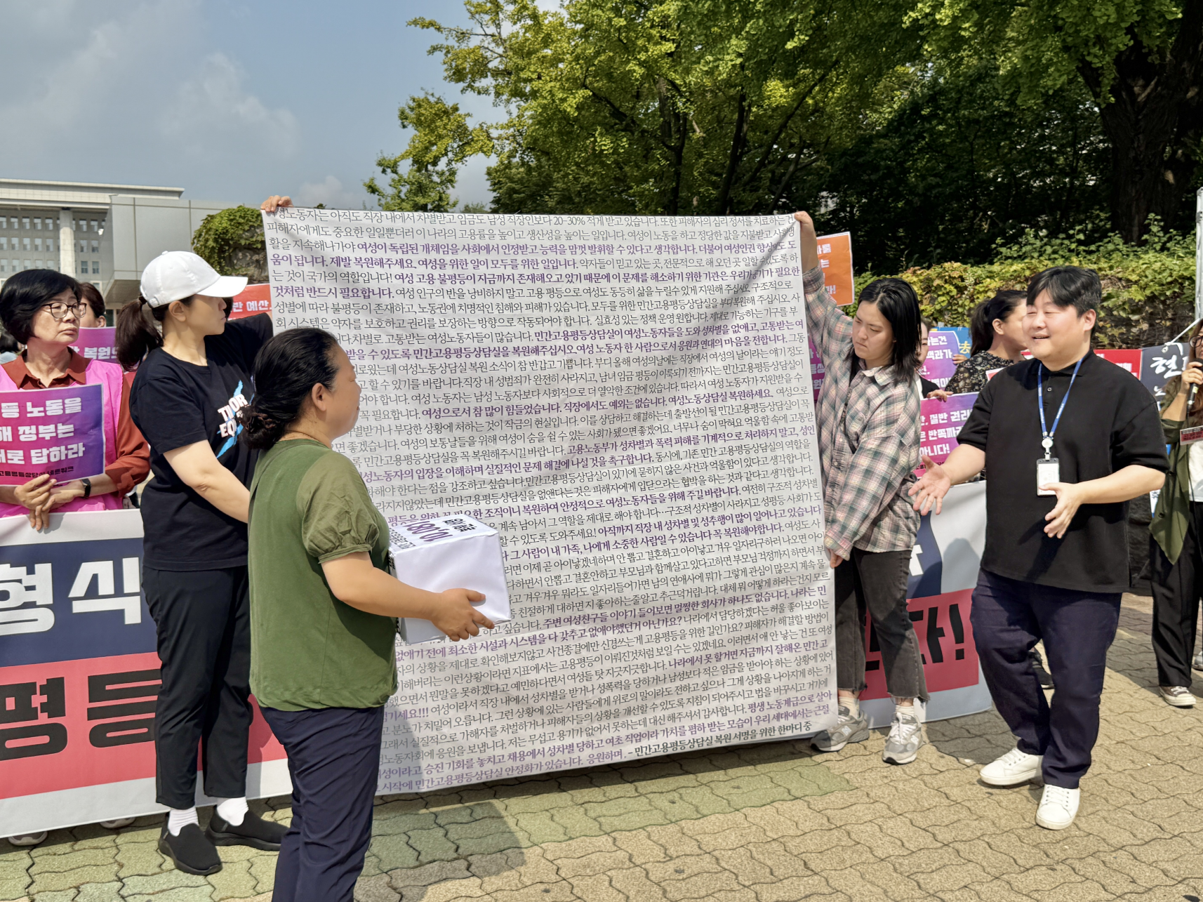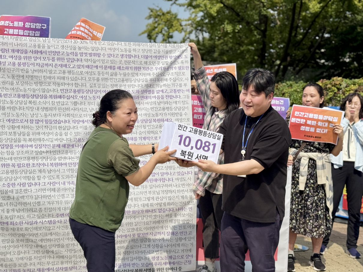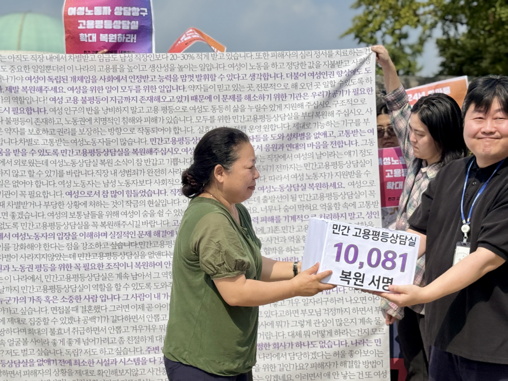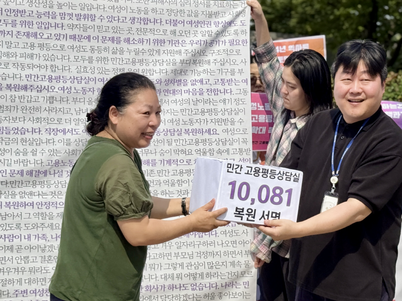 - 퍼포먼스 민간고용평등상담실 복원을 요구하는 시민 10,081명의 서명 전달식