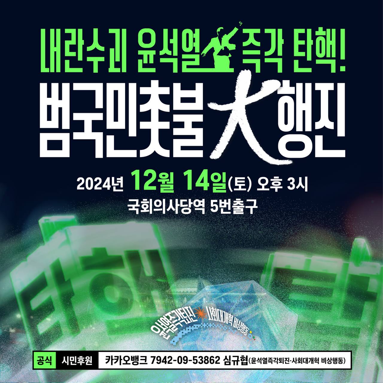 12/14(토) 내란수괴 윤석열 즉각 탄핵! 🔥 범국민촛불대행진 안내