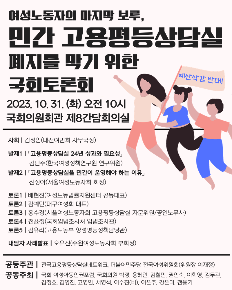 [토론회] “여성노동자의 마지막 보루, 민간 고용평등상담실 폐지를 막기 위한 국회토론회”