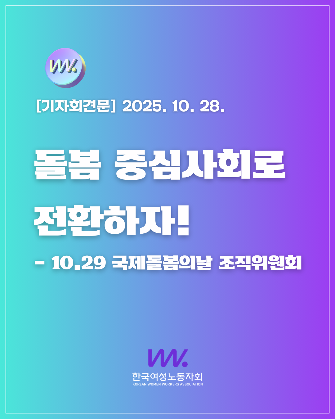 10월 29일은 국제돌봄의날입니다. 돌봄의 공공성 강화, 돌봄 노동의 가치 인정, 그리고 돌봄 노동자 권리 보장을 위해 2023년 7월 UN 총회에서 공식 제정한 국제기념일입니다. 인간은 누구나 돌봄 없이는 생존할 수 없습니다. 우리는 오늘 △돌봄 받을 권리, △돌볼 권리, △돌봄 노동자 권리 보장을 위해 누구나 돌보고, 돌봄을 받을 수 있으며, 돌봄 노동이 존중받는 사회를 실현하기 위해 국제돌봄의날 조직위원회는 연대와 실천에 나섭니다.