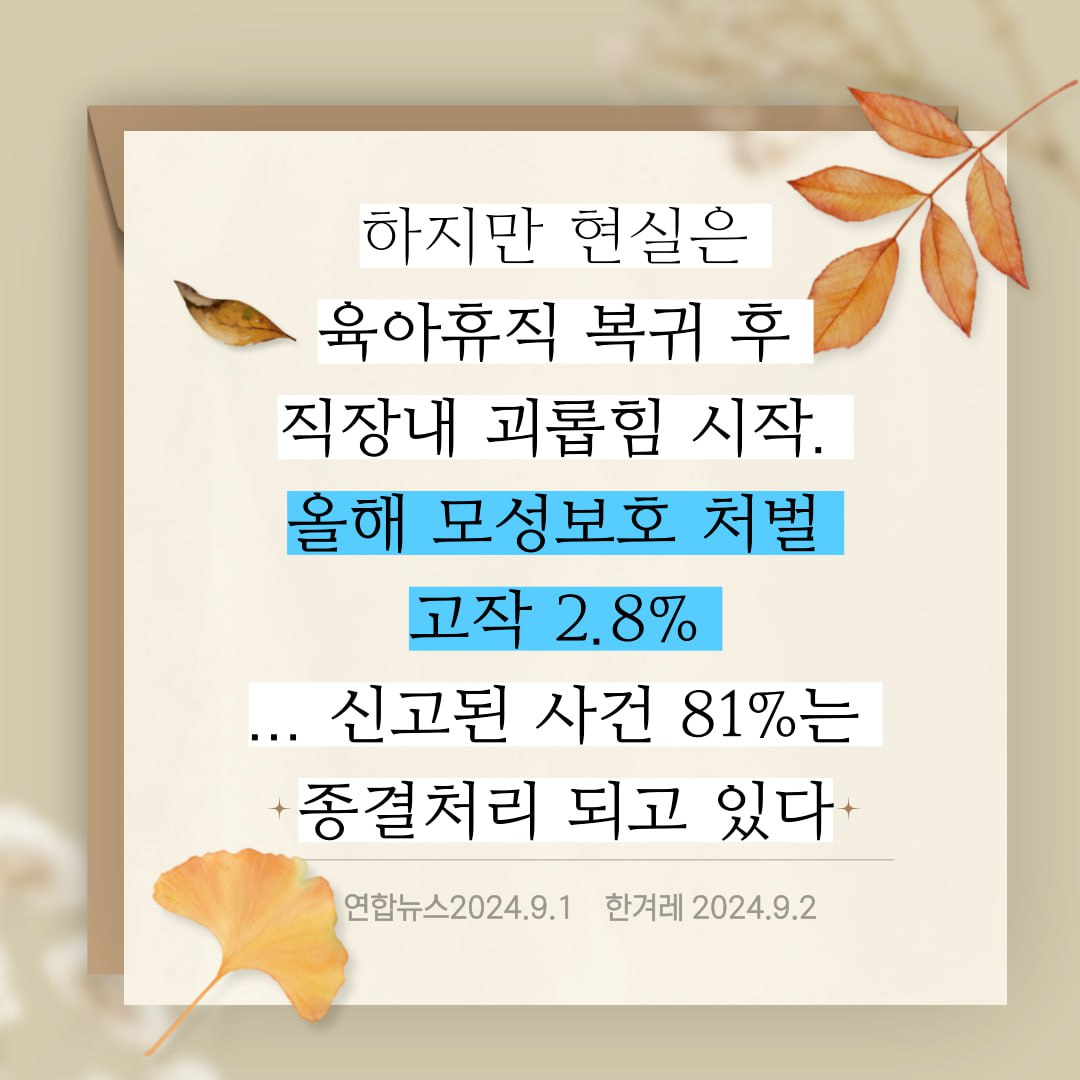 육아휴직을 이유로한 '불이익 사례'는 여전하다.